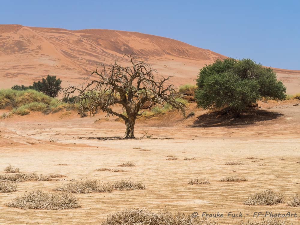Neben dem Sossuvlei gibt es weitere Vleis wie z.B. das Dead Vlei und das Hidden Vlei. Diese kann man sich im Schweiße seines Angesichts erwandern.